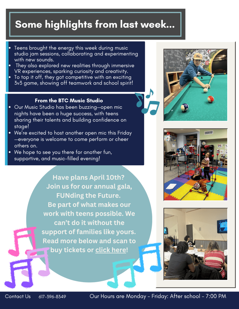 BTC is open to 6th-8th graders Monday thru Friday until 7pm! Check out the link below and watch out for more programs and events coming in the future.