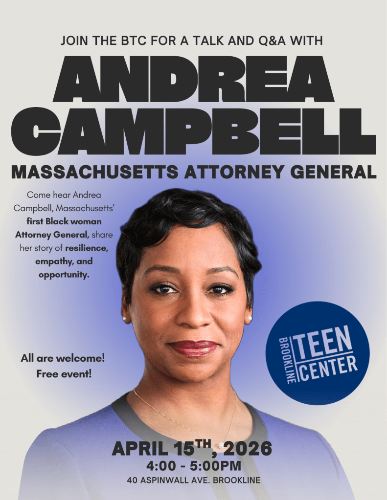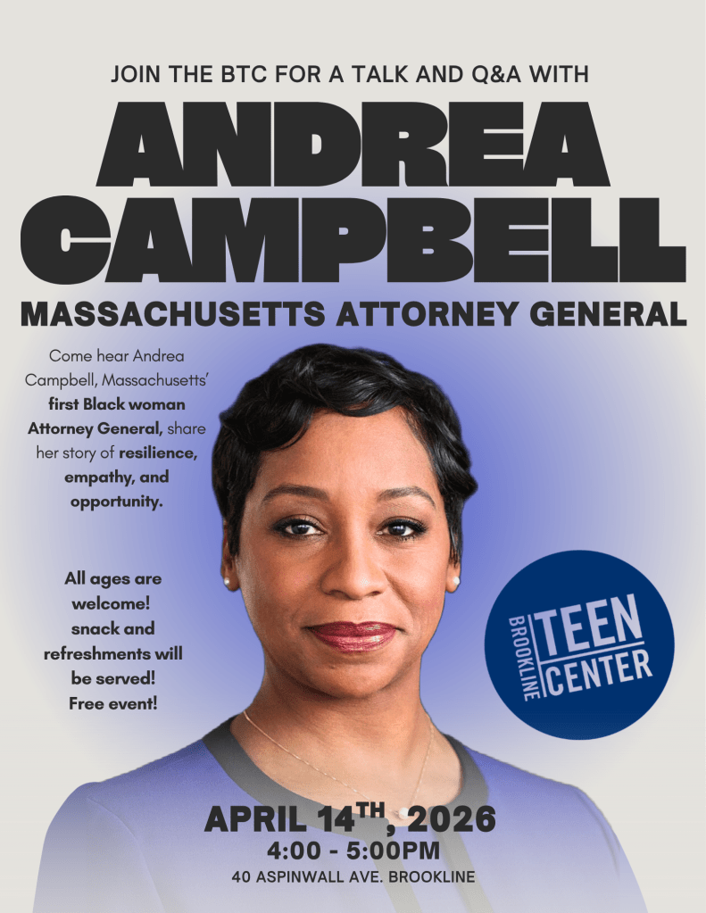 Join the BTC for a talk and Q&A with Andrea Campbell (Massachusetts Attorney General) All are welcome!